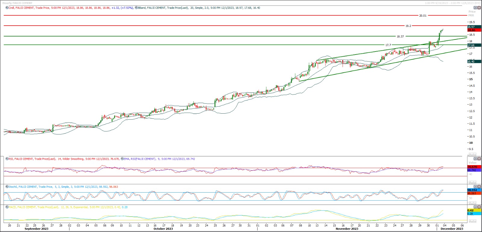 TECH NOTE: FCCL is moving forward after bullish breakout of its ascending wedge on hourly chart for expansion of its previous bullish correction.