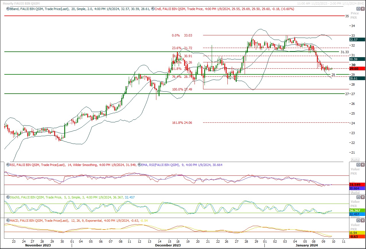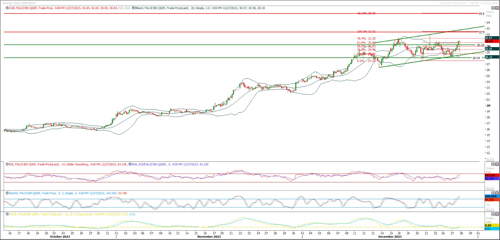 TECH NOTE: FFBL is in expansion mode of its recent bullish correction and it would initially try to target 32.80 and breakout above this region would call for 35.50 and more.