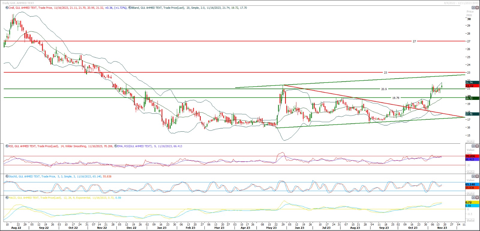 Previously second targets of GATM have been defined at 23 Rs and 27 Rs in Analysis given on 16th Nov. 2023 while initial target of 23 Rs have already been triggered. But secondary Target is being revised now at 25.50 Rs instead of 27 Rs.