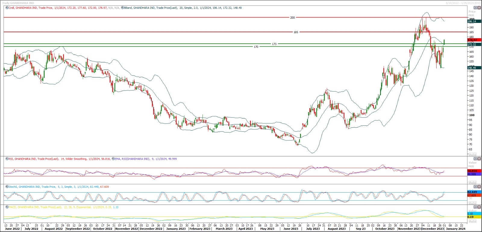 Buy as long as trading above 173 with strict stop loss of 170 and profit targets at 185 with extension towards 200TECH NOTE: GHNI is moving towards expansion of its recent bullish correction and momentum indicators are trying to bounce back