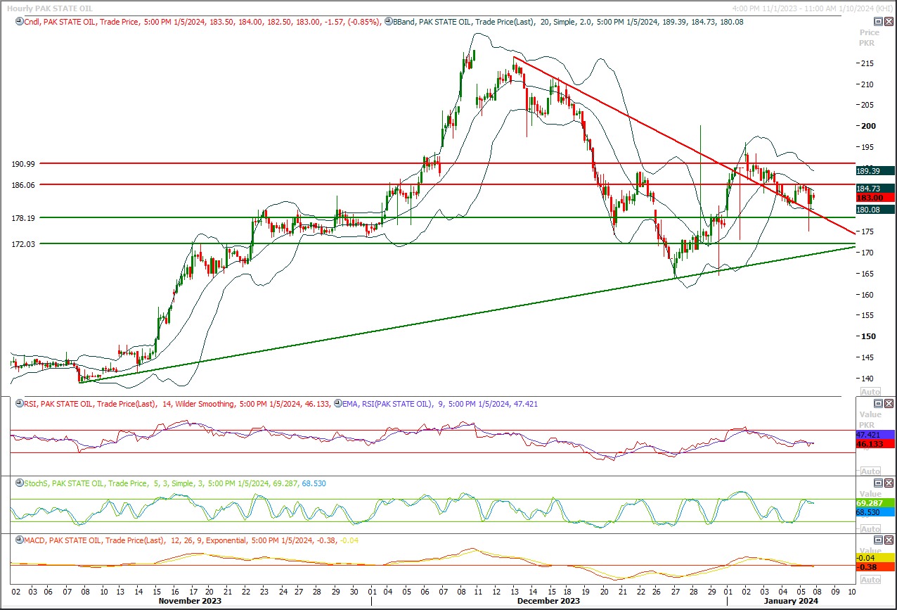 TECH NOTE: PSO is trying to establish ground above a horizontal supportive region and would try to target 183 and 187 initially while breakout above 187 will call for 192.
