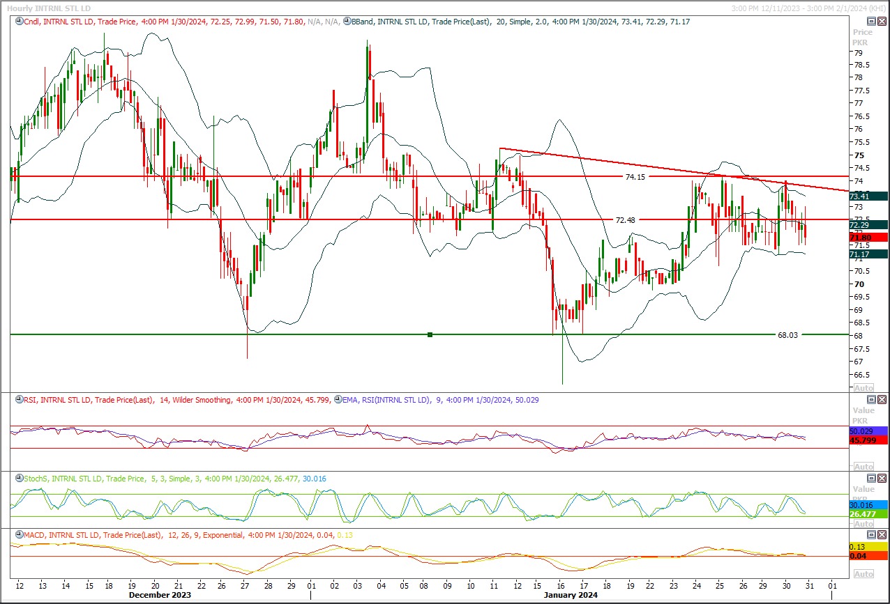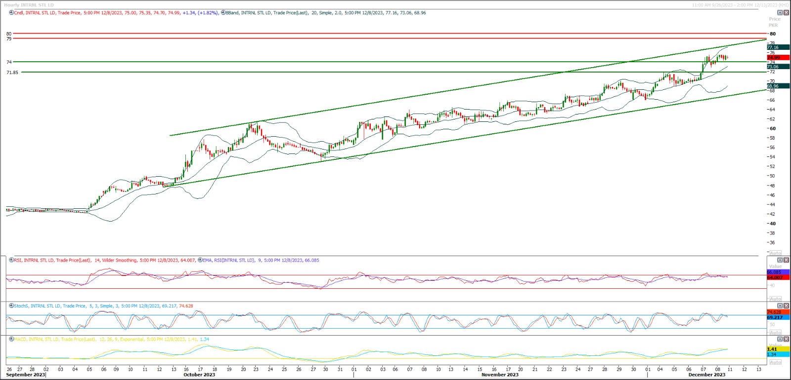 Buy above 71.50 with strict stop loss of 69.50 and profit target at 74.TECH NOTE: ISL have successfully established ground above correction levels of its previous bullish rally and now its being supported by an ascending trend line.