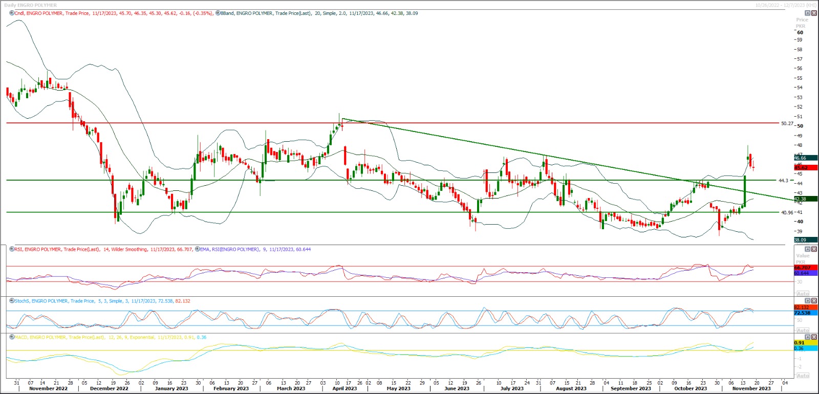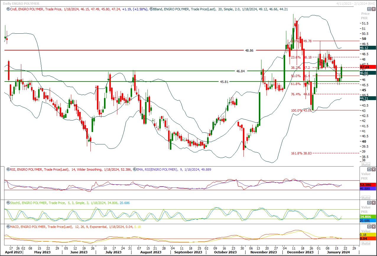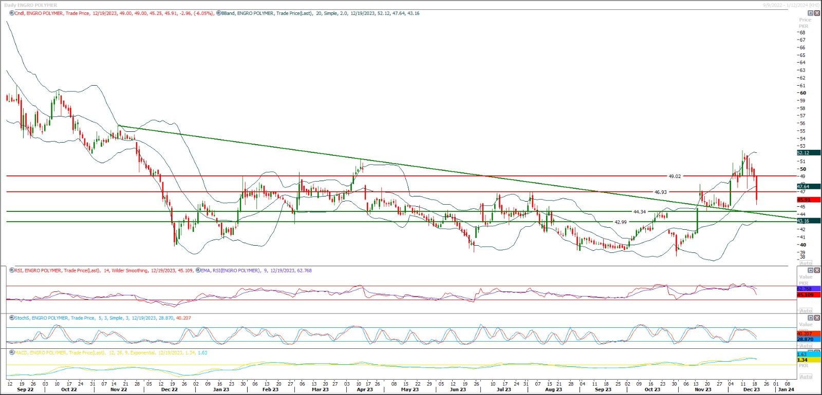 Short sell below 47 with strict stop loss of 49 and profit target at 44.50 and 43.TECH NOTE: EPCL is taking correction of its recent bullish rally.
