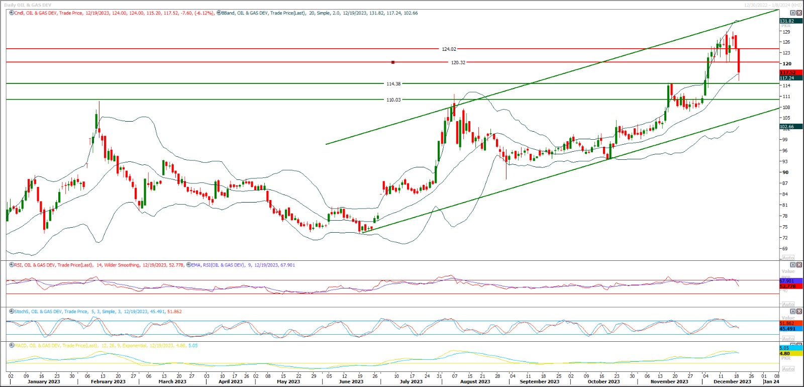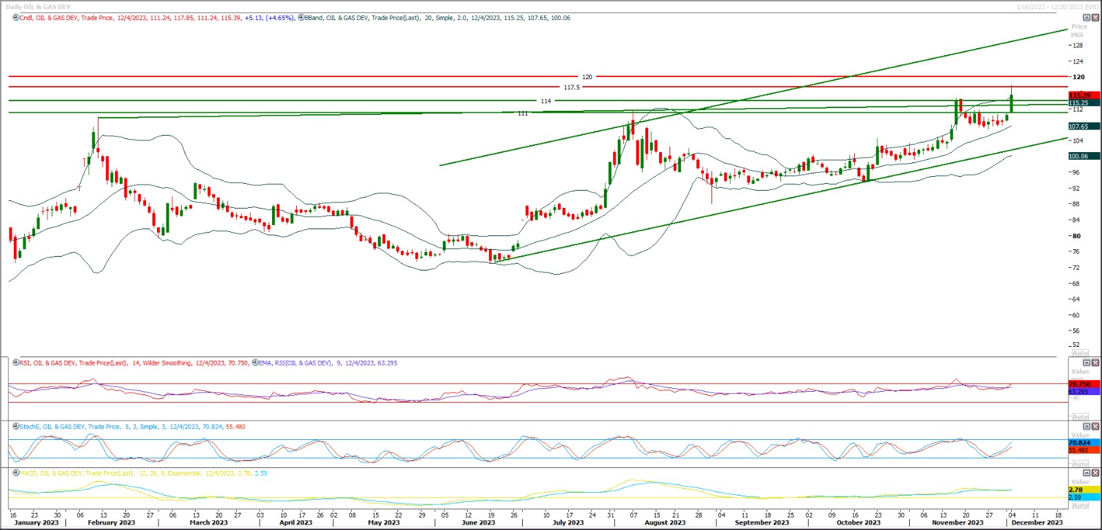TECH NOTE: OGDC is in expansion mode of its previous daily correction inside a bullish price channel, daily momentum indicators are strong bullish.