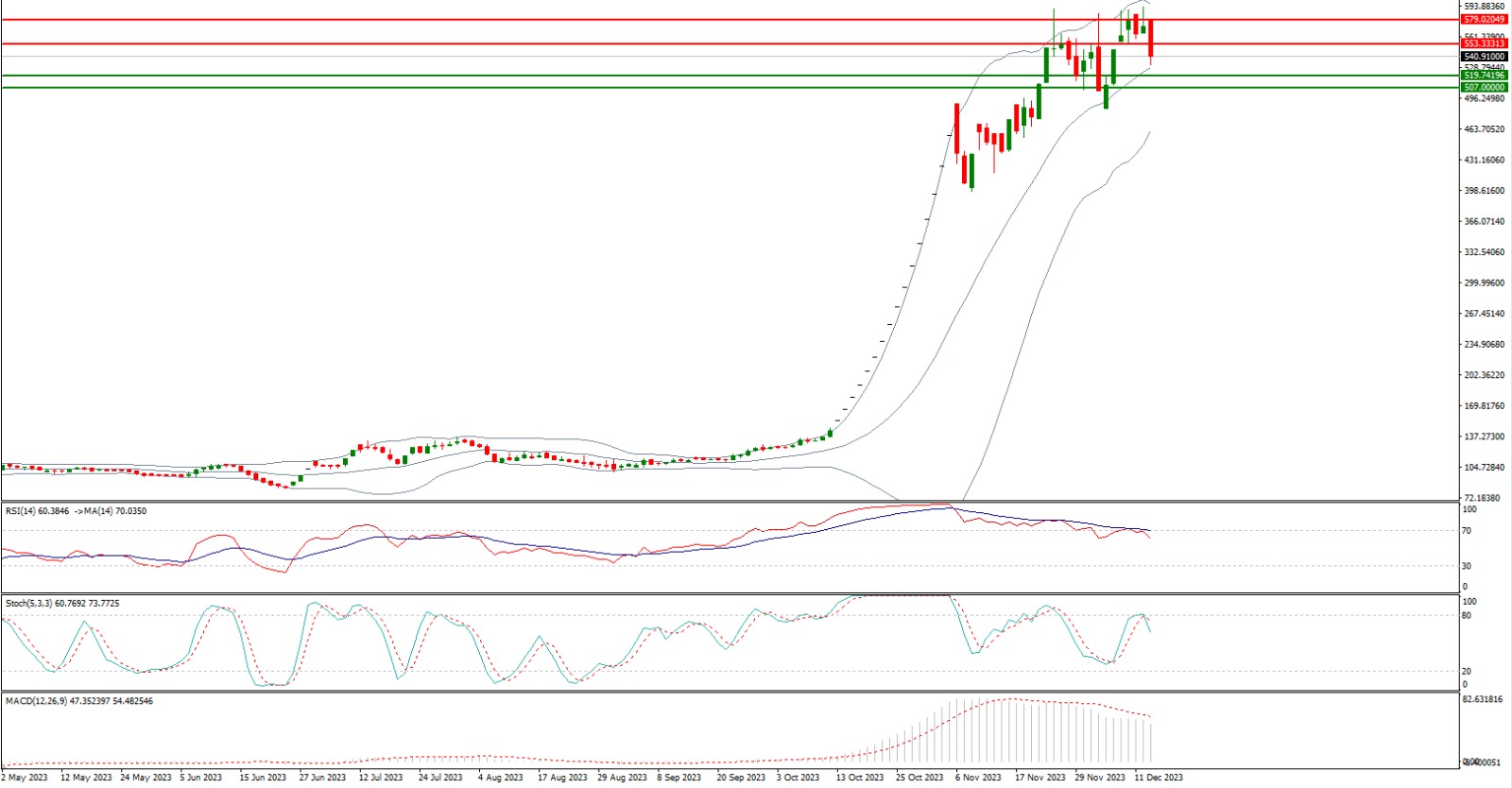 Short sell below 613 with strict stop loss of 635 and profit target at 580 with extension towards 560 and 540TECH NOTE: PSMC is being capped by a horizontal resistant region on weekly chart.
